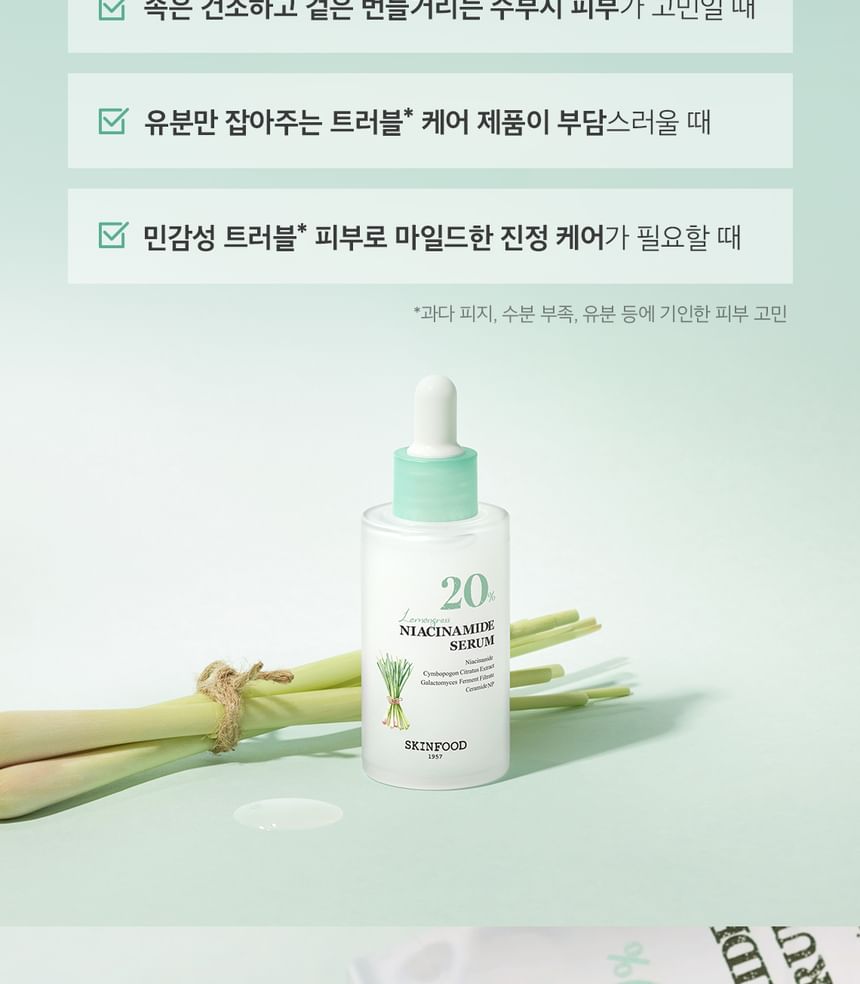 A serum that contains Lemongrass Extract and Niacinamide to help maintain the skin's water-oil balance for dehydrated skin.