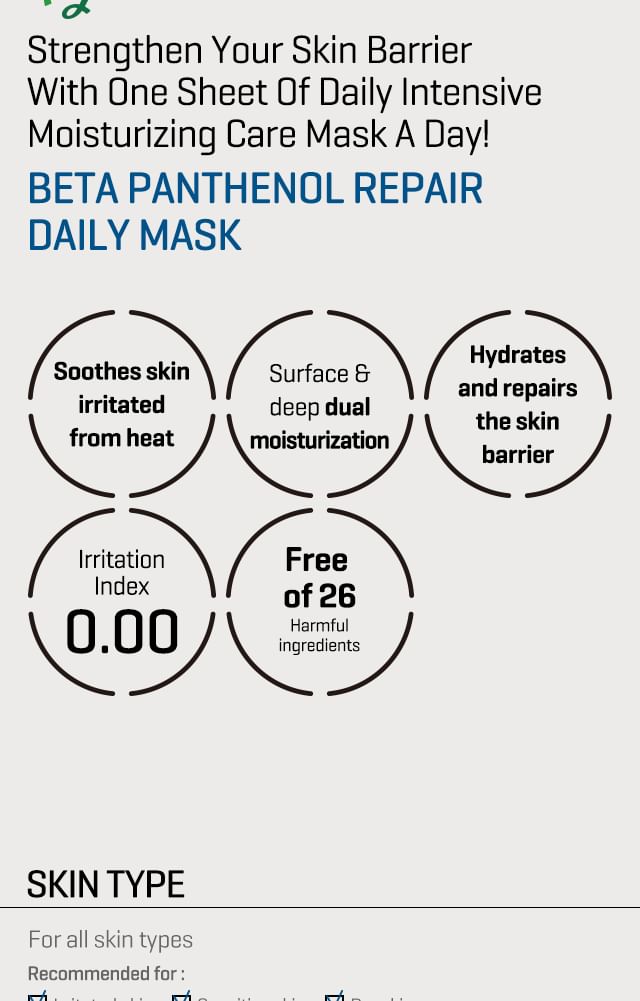 A daily mask to strengthen skin barrier through deep moisturizing and soothing effect on irritated skin.